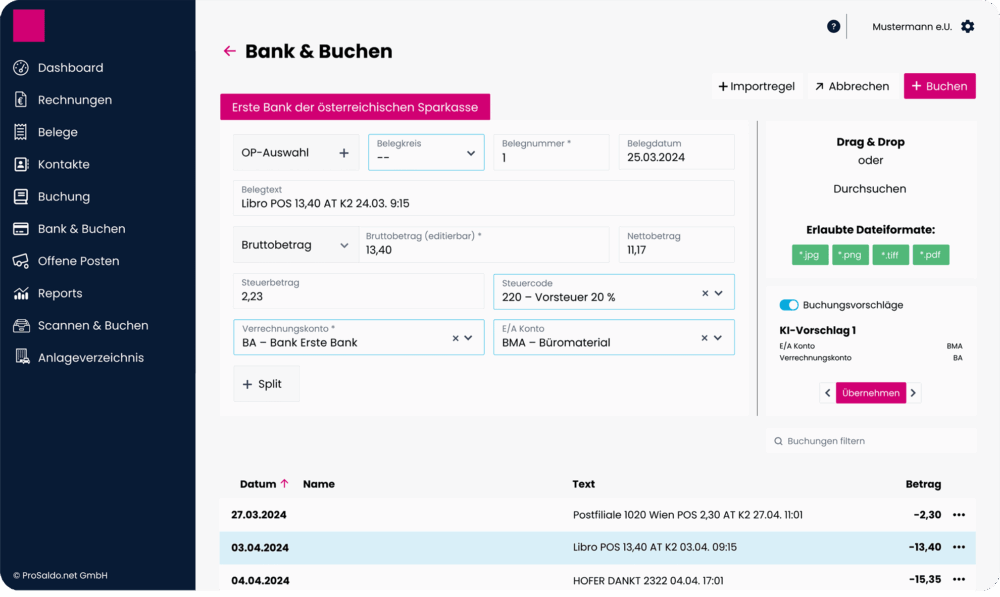 ProSaldo.net ist die professionelle und sichere Online-Lösung für Buchhaltung und Rechnungen für Gründer, EPU, KMU, Selbstständige und Kleinunternehmer in Österreich.