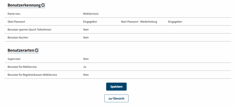 „Benutzer für Registrierkassen-WebService“: „Nein“